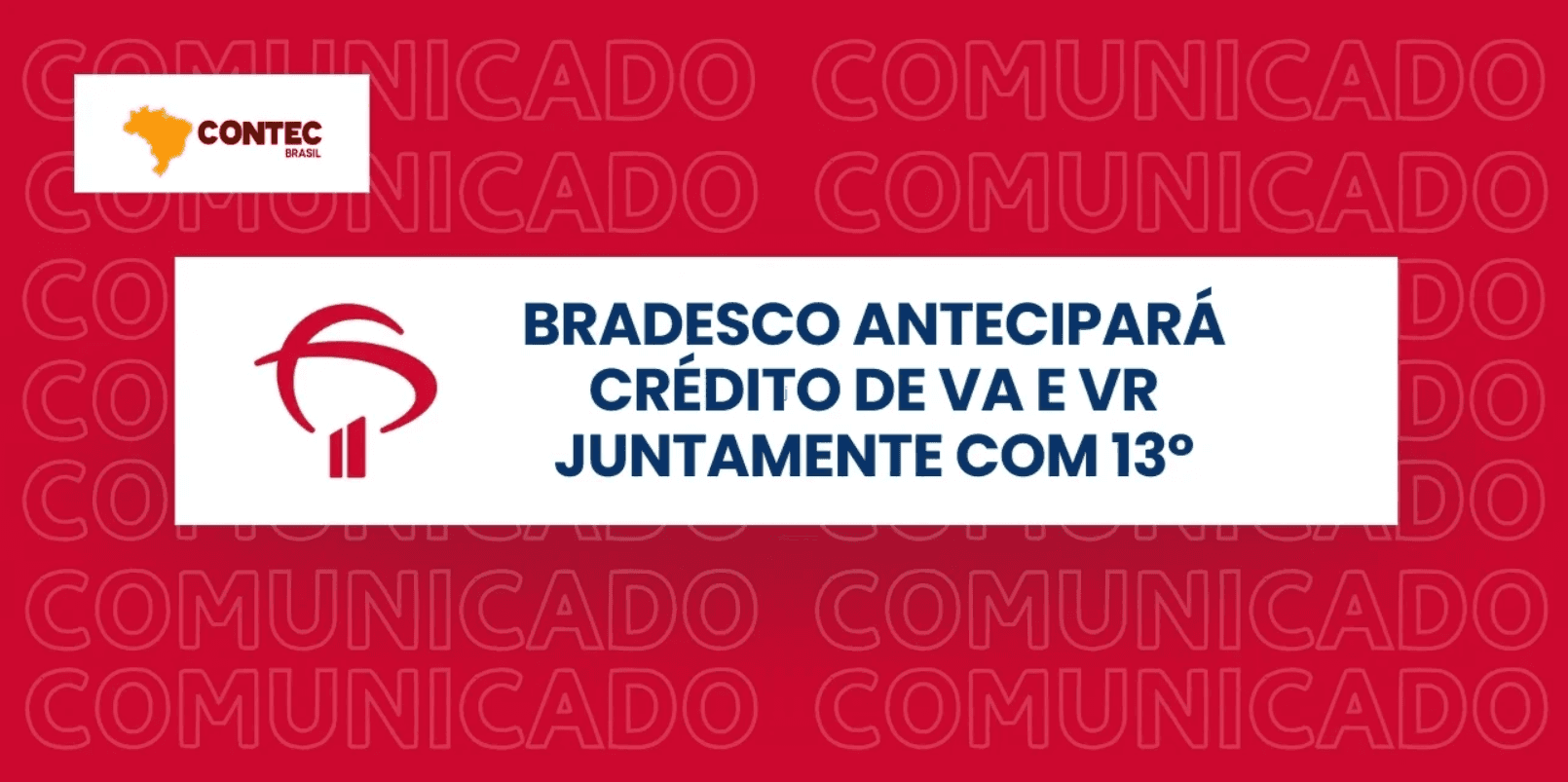 O Banco Bradesco anunciou que antecipará o crédito dos vales alimentação (VA) e refeição (VR) para o dia 19 de dezembro, juntamente com o pagamento da segunda parcela do 13º salário.