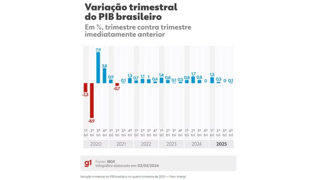 Nos últimos três meses de 2025, a atividade econômica brasileira registrou um crescimento de 0,1% em comparação ao terceiro trimestre, mantendo-se praticamente estável.